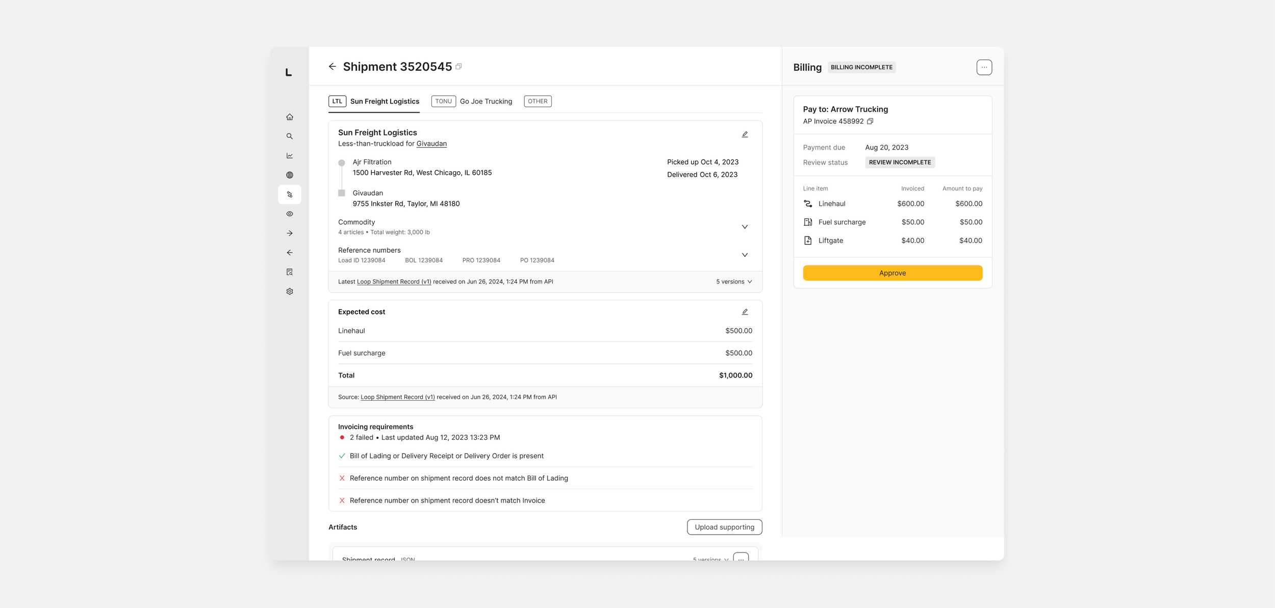 Enterprise-ready platform for automated AP, AR and payments used by shippers and 3PLs